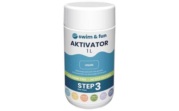 Um sicherzustellen, dass der Pool sauber und hygienisch ist, ist es wichtig, den Boden und die Seiten des Pools von Ablagerungen freizuhalten. Der Aktivator verhindert das und verlängert die Wirkung des Chlors. Wenn der Pool bereits Ablagerungen hat, muss zuerst eine doppelte Dosis Schnellchlor zugefügt werden und danach wird der vorbeugende Aktivator dazugegeben. Zusammen mit chlorfreien oder chlorhaltigen Mitteln verwenden.