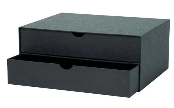 Praktische Aufbewahrungsbox aus starker, FSC-zertifizierter Pappe, mit zwei ausziehbaren Schubladen.