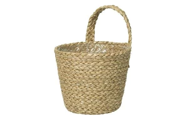 Dekorative und moderne Blumenampel aus strapazierfähigem Seegras, einem schönen Naturmaterial. Die Innenseite des Korbs ist mit dünnem Kunststoff beschichtet.