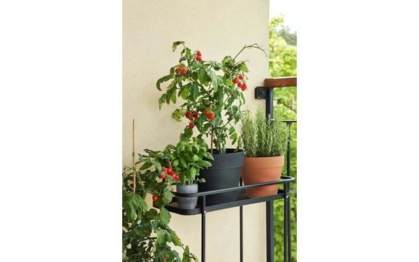 Blumenständer aus schwarzem Stahl, für den Innen- und Außenbereich.