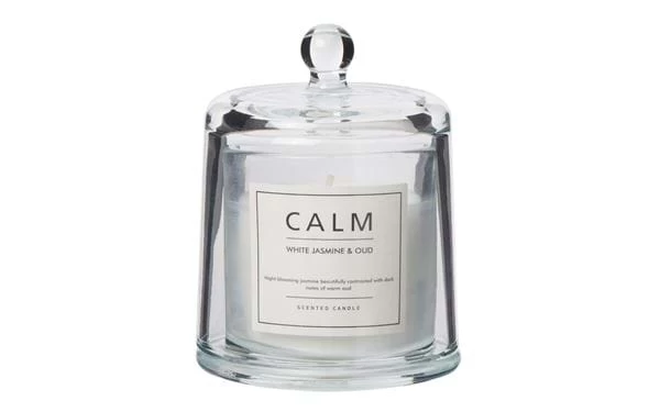 Duftkerzen in den eigenen vier Wänden tragen zu einer gemütlichen Atmosphäre bei und sind gleichzeitig ein schönes Einrichtungsdetail. Calm ist eine dekorative Duftkerze im Glasbehälter mit Glasglocke.