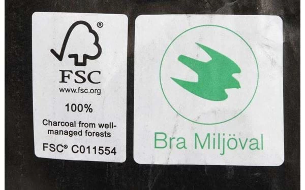 Mit dem Nordischen Schwan umweltzertifizierte und FSC-zertifizierte Holzkohle aus Laubhölzern.