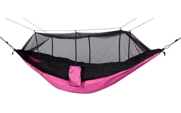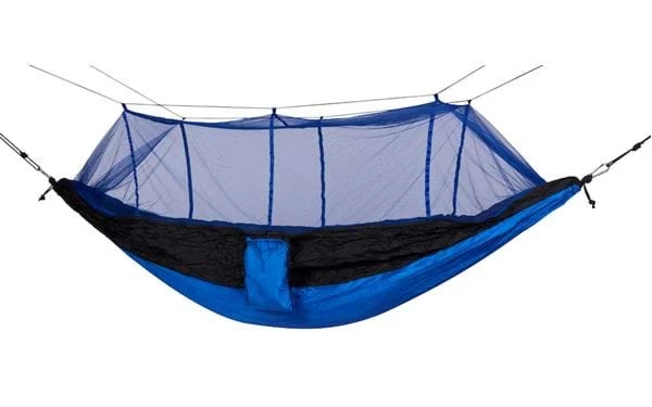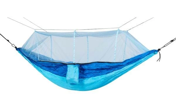 Mit einem Insektenschutznetz für deine Hängematte können die insektenreichsten Bereiche im Wald zu einer entspannenden Oase werden. Warum nicht einfach die Hängematte mit Insektenschutz aufhängen und eine oder zwei Nächte im Freien schlafen? Dieses Set enthält eine Hängematte, Moskitonetze, 2 runde Seile (3 Meter), 2 Seile für Insektenschutznetz (6 Meter) und 2 Karabinerhaken. Die Hängematte besteht aus 210T Nylon (Fallschirmgewebe).