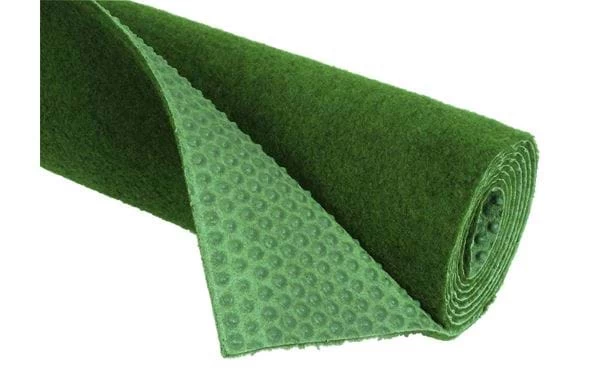 Kunstrasen mit genoppter Unterseite, die die Trocknung nach Regen beschleunigen. Passt gut auf den Balkon und auf die Terrasse.