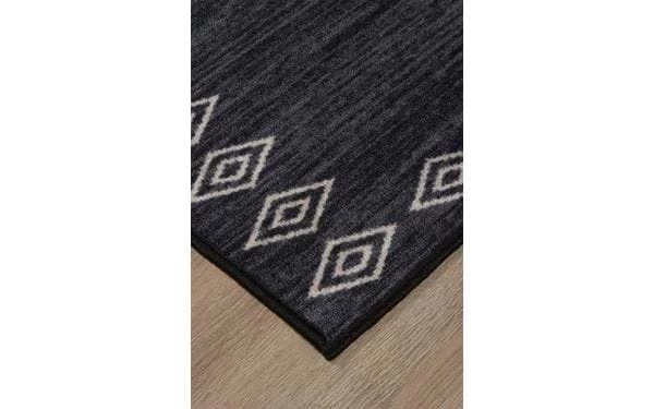 Maschinengetufteter Teppich mit aufgedrucktem Muster und gummierter Rückseite, die ein Verrutschen des Teppichs verhindert. Das synthetische Material macht den Teppich langlebig, pflegeleicht und reinigungsfreundlich.