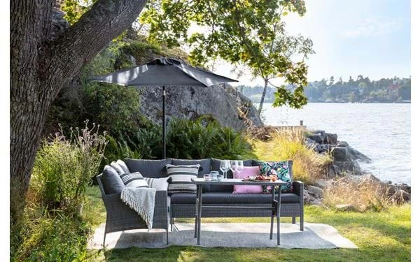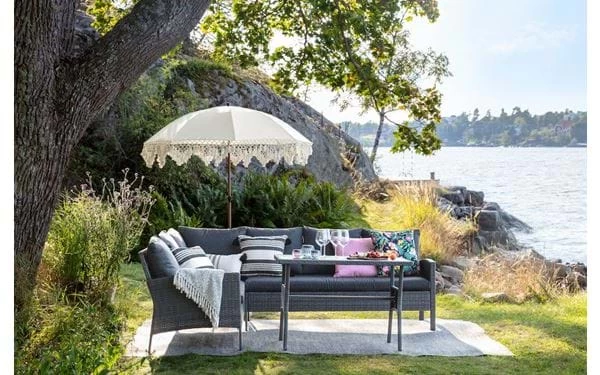 Bereichere deine Terrasse oder deinen Garten mit Toscana, einer gemütlichen Lounge mit Platz für eine große Gruppe. Das Paket umfasst ein Ecksofa aus pflegeleichtem Kunstrattan mit korrosionsbeständigem Stahlrahmen sowie einen Tisch mit einer Tischplatte aus wetterfestem Kunstholz. Das Kunstrattan ist handgeflochten und vermittelt einen naturgetreuen Eindruck, wobei das Material aus Kunstfaser wetterfest und langlebig ist. Das Kunstrattan und die mitgelieferten Polster sind UV-behandelt, um das Risiko zu verringern, dass die Farbe in der Sonne ausbleicht. Das Sofa bietet eine weiche und bequeme Sitzfläche. An dem etwas höheren Tisch kannst du bequem deinen Kaffee oder dein Essen genießen.