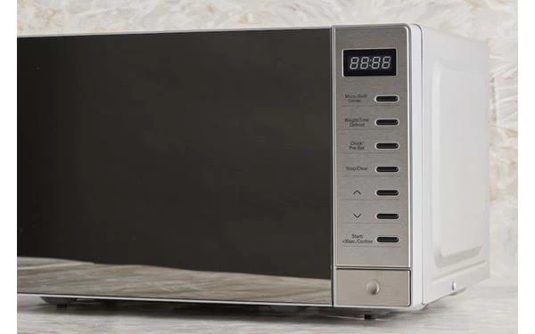 Mikrowelle mit stylischer Optik. Grillfunktion für eine goldbraune und knusprige Kruste. 5 Leistungsstufen, 8 Automatikprogramme und digitaler Timer, der bis 90 Minuten einstellbar ist. Drehteller, Auftaufunktion, Expressprogramm und Kindersicherung.