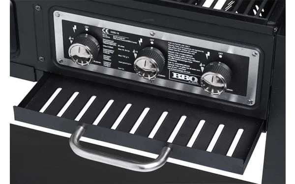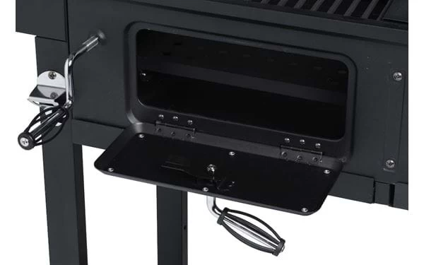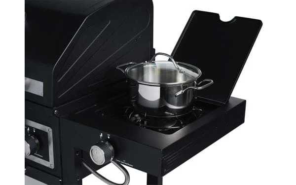 | Ausrüstung | Gasgrill; Thermometer, Warmhalterost, herausziehbare Tropfschale vorn. Kohlegrill; Thermometer, Warmhalterost, höhenverstellbarer Kohlerost mit Kurbel, Rauchabzug, herausziehbarer Aschebehälter vorne, Seitentisch mit zwei Haken und Flaschenöffner. |