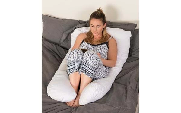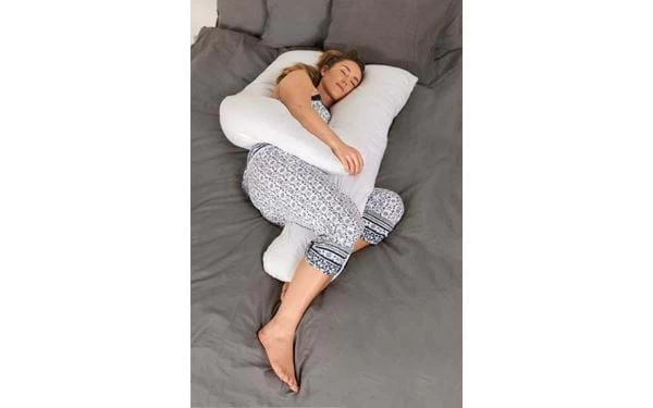 Großes, weiches Seitenschläferkissen, das für eine bequemere Schlafposition entwickelt wurde. Dank der U-Form bietet es viele Anwendungsbereiche und sorgt für eine ausgezeichnete Unterstützung für Schwangere oder für diejenigen, die bequem auf der Seite oder dem Rücken schlafen möchten. Die weiche Füllung macht das Kissen flexibel und formbar, sodass Rücken, Bauch, Schultern und Hüften entlastet werden. Der Bezug ist abnehmbar und für die Maschinenwäsche geeignet.