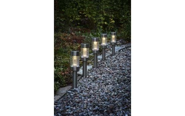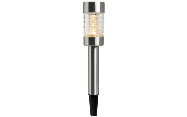 Solarleuchte, die als Tischleuchte oder als Wegbeleuchtung mit den mitgelieferten Spießen verwendet werden kann. Maximale Höhe 27 cm. Wird tagsüber aufgeladen und leuchtet automatisch bei Dämmerung. Leuchtet mit warmweißem Licht. Die Beleuchtung hat einen Ein- und Ausschalter.