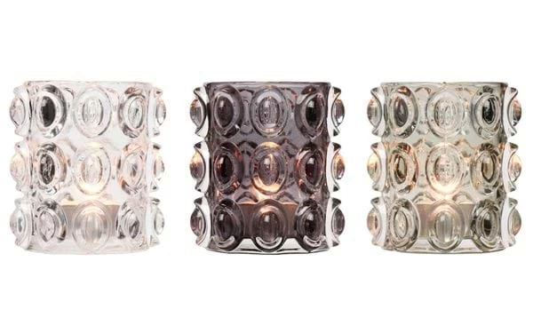 Teelichthalter aus Glas. In verschiedenen Farben erhältlich.