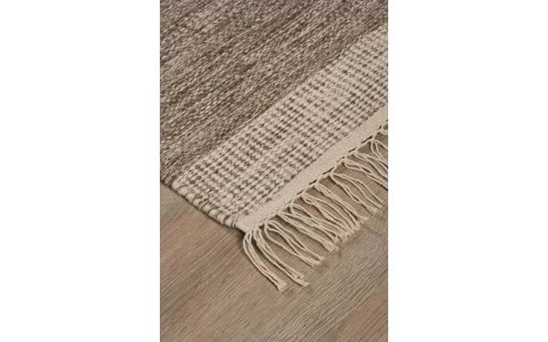 Dieser braune Wollteppich wird von Hand gewebt, weshalb jeder Teppich einzigartig in seinem Aussehen ist. Die natürlichen Wollfette machen ihn widerstandsfähig gegen Schmutz und Flecken. Der Schmutz bleibt auf der Oberfläche und lässt sich durch Staubsaugen oder Lüften leicht entfernen. Pflegehinweis: Bei neuen Wollteppichen ist Fusseln normal. Den Teppich regelmäßig absaugen, ausschütteln und drehen.