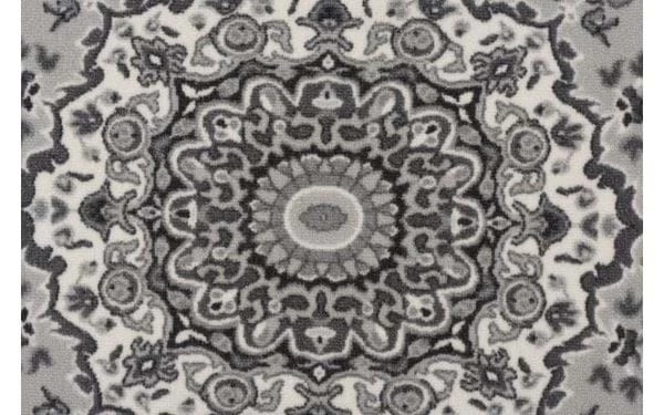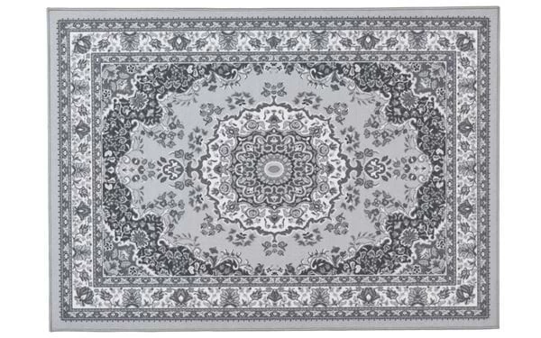 Maschinengetufteter Teppich mit aufgedrucktem Muster und gummierter Rückseite, die ein Verrutschen des Teppichs verhindert. Das synthetische Material macht den Teppich langlebig, pflegeleicht und reinigungsfreundlich.