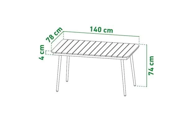 Neapel ist ein Tisch mit Platz für mindestens 4 Personen, der für die kleinere Terrasse geeignet ist. Die Tischplatte besteht aus pflegeleichtem Kunstholz und das Gestell aus korrosionsbeständigem Stahl und Aluminium. Damit du eine komplette Essgruppe zusammenstellen kannst, kombiniere ihn mit unseren Stühlen und profitiere von unseren günstigen Paketpreisen.