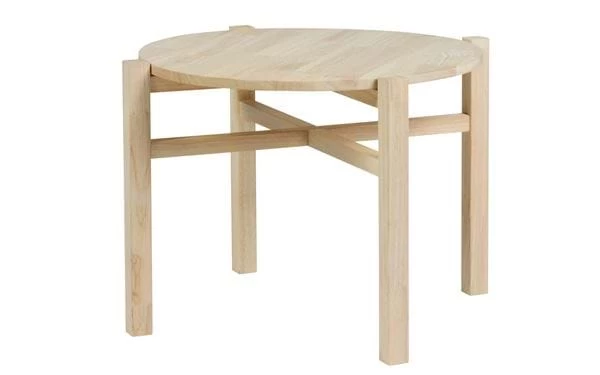 Philippe ist ein niedriger und runder Tisch aus hellem Holz. Dank seiner Schlichtheit lässt sich der Tisch mit den meisten Möbeln und Einrichtungsstilen kombinieren.