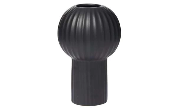 Die Vase Nova ist aus Keramik gefertigt und hat eine gerippte Oberfläche sowie eine abgerundete Form oben. Mit ihrer weichen Form wirkt sie ohne Blumen genauso schön wie mit Blumen.